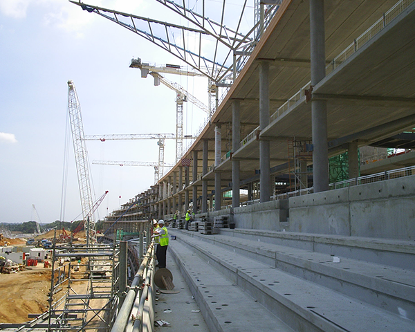 At 350 metres long and 40 metres deep, the new grandstand will hold 45,000 people, including 300 private boxes. As a result, the terracing and public concourse required a robust sealant to accommodate high volume foot trafficking.
