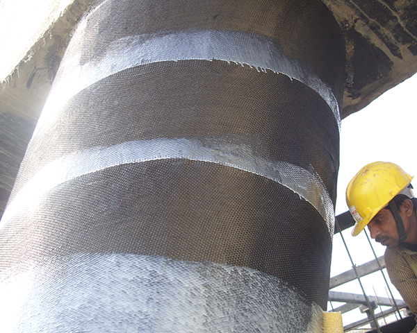 With this unique solution entire column was strengthened with no additional concreting work. It was also not very visible from ground as sand sprinkling was done over it. We were able to deliver the customer exact solution with minimum cost and time. With a team of experienced applicators the repair work was successfully completed.