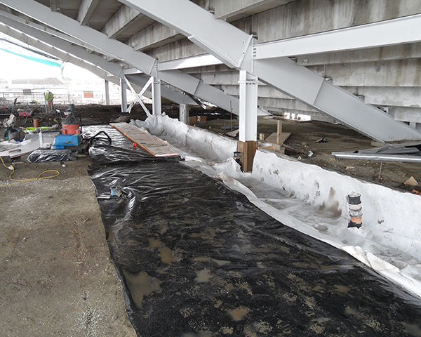 Proofex Total, a high performance, gas impervious and reinforced membrane was used under all of the buildings, stadium stands and beneath the indoor football pitch to protect from ingress of any harmful gases.